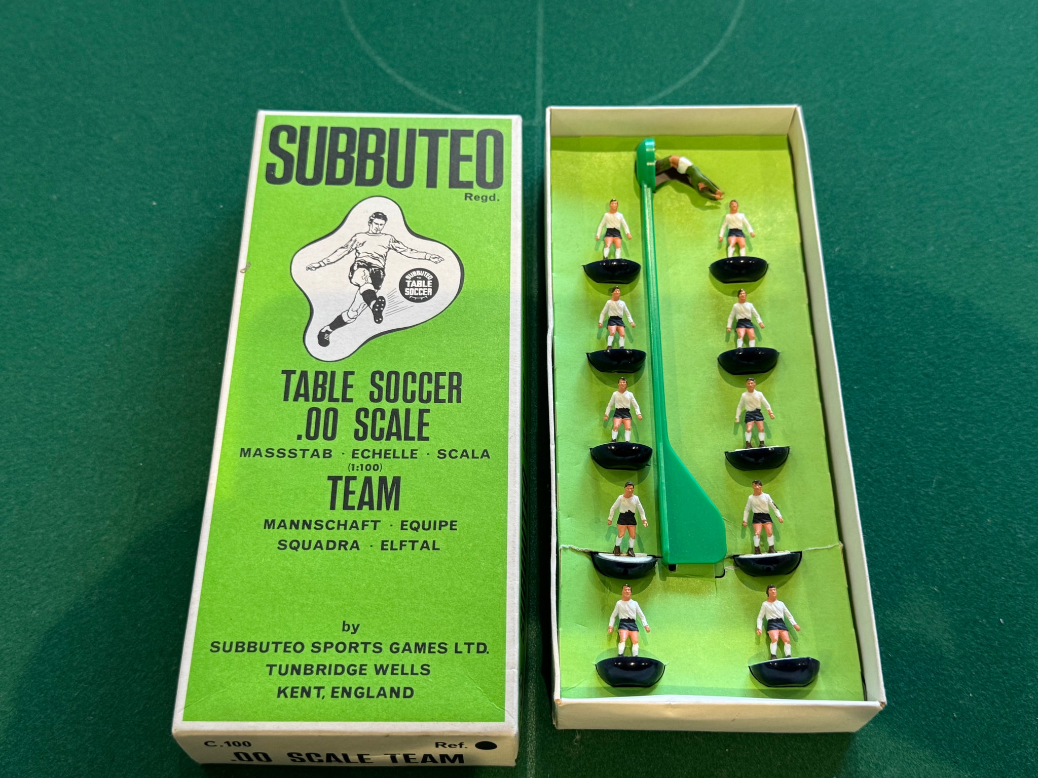 Subbuteo HW Team England Ref 154 in original box. This team is in excellent condition. No breaks or reglues or numbers painted on backs or bases.