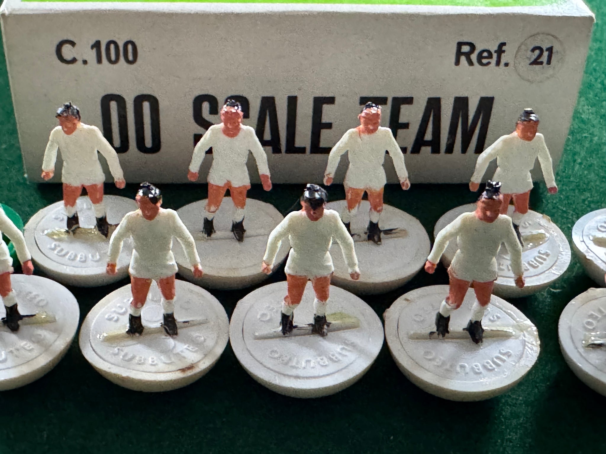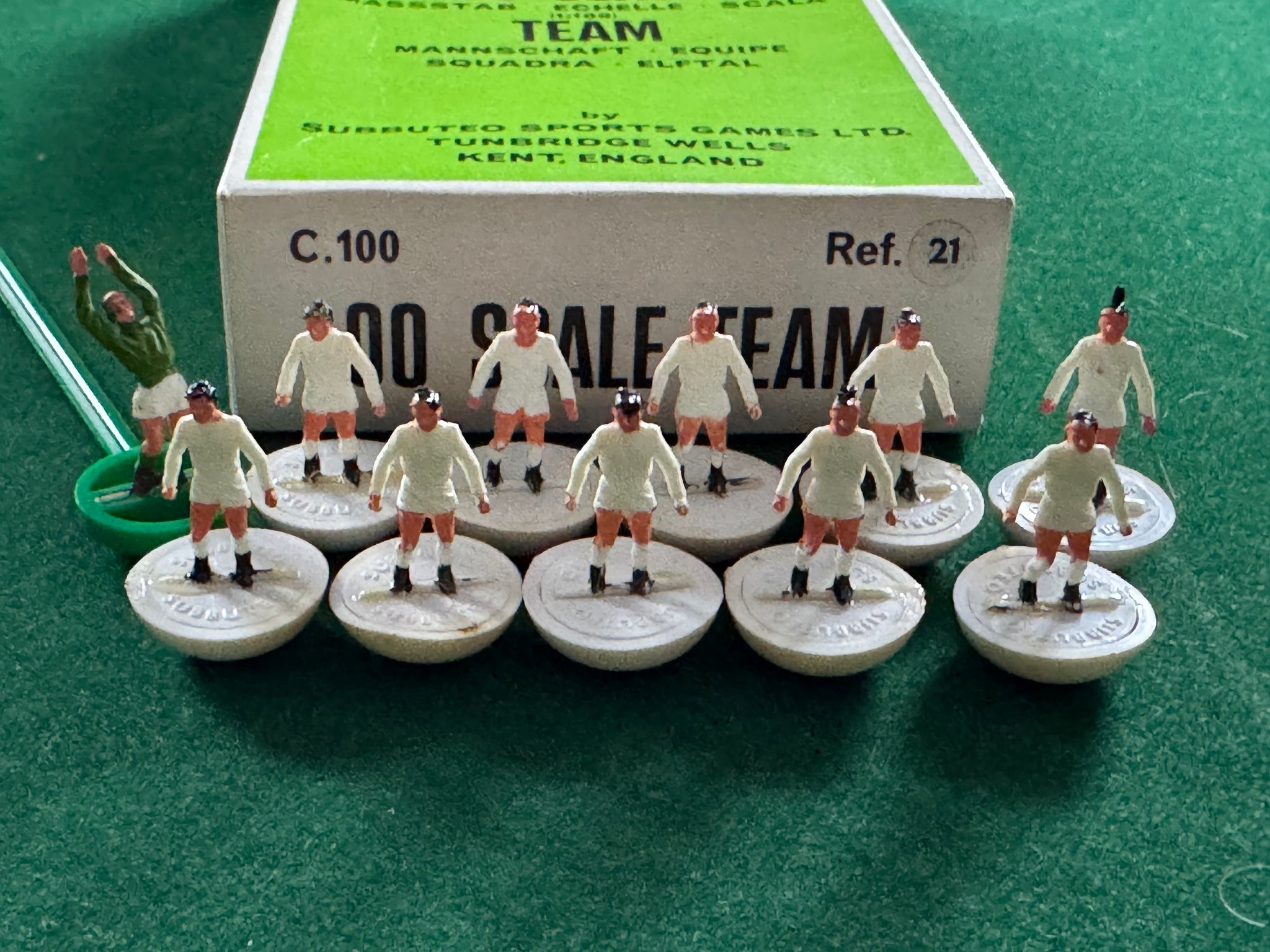 Subbuteo HW Team Leeds Ref 21 in original Referenced box. This team is in excellent condition. No breaks or reglues or numbers painted on backs or bases.