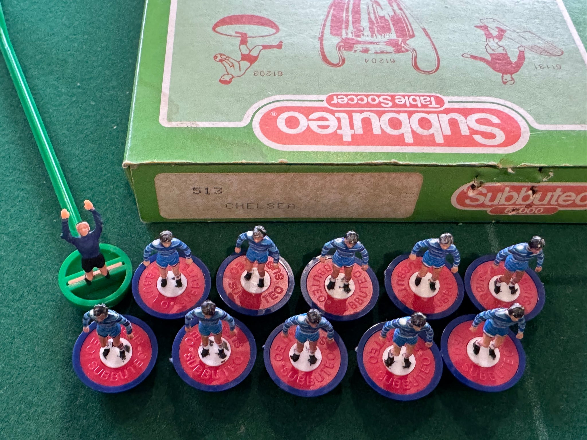 Subbuteo LW Chelsea Ref 513  in Original and Referenced box. This team is in excellent condition. No breaks or reglues or numbers painted on backs or bases.