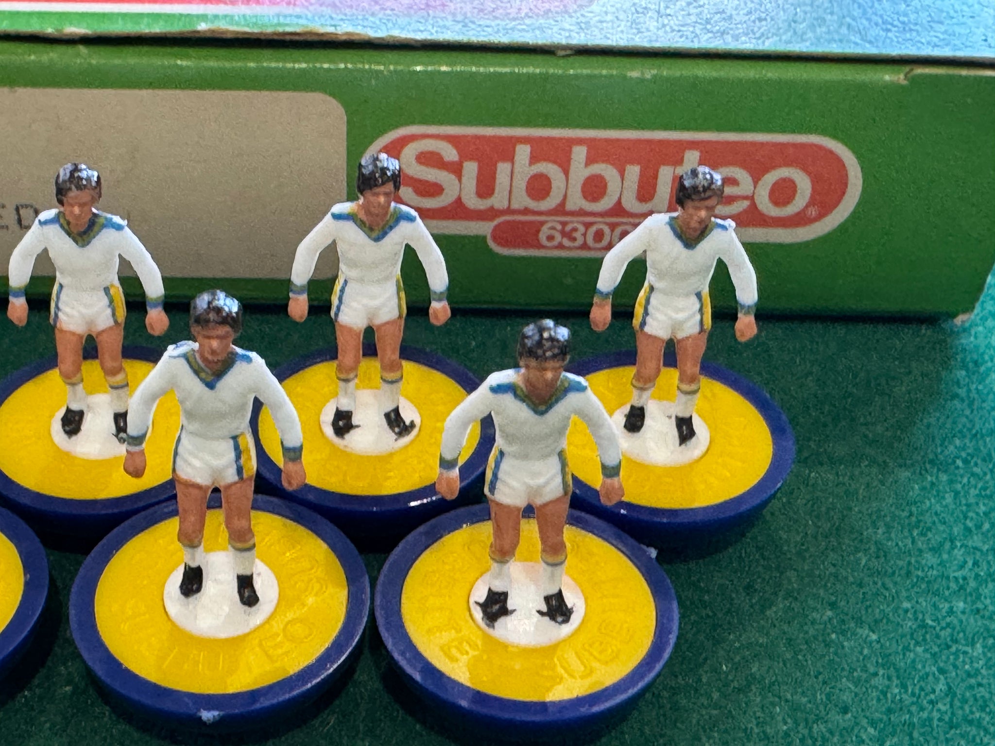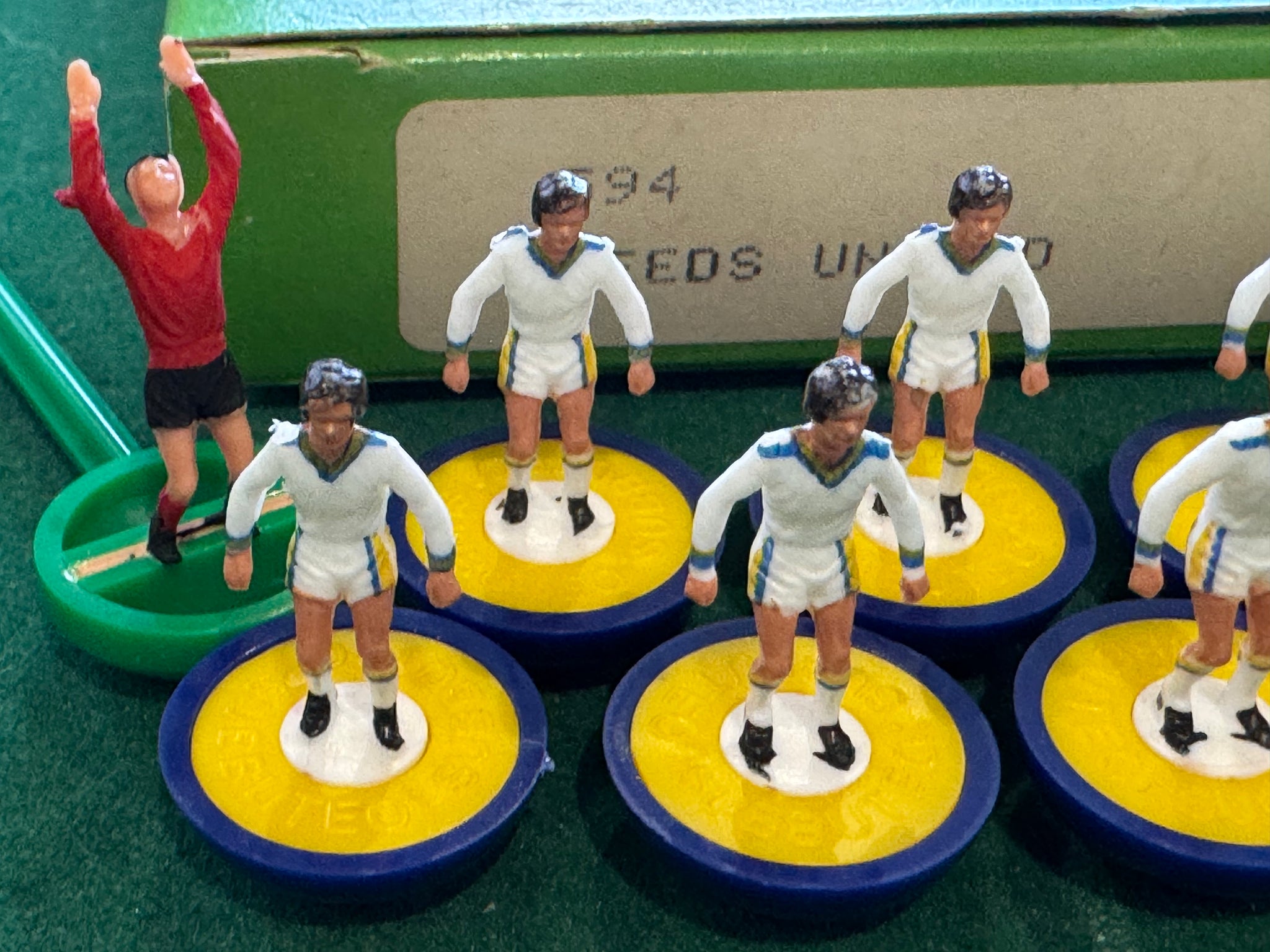 Subbuteo LW Leeds United Ref 594 in Original and Referenced box. This team is in excellent condition. No breaks or reglues or numbers painted on backs or bases.